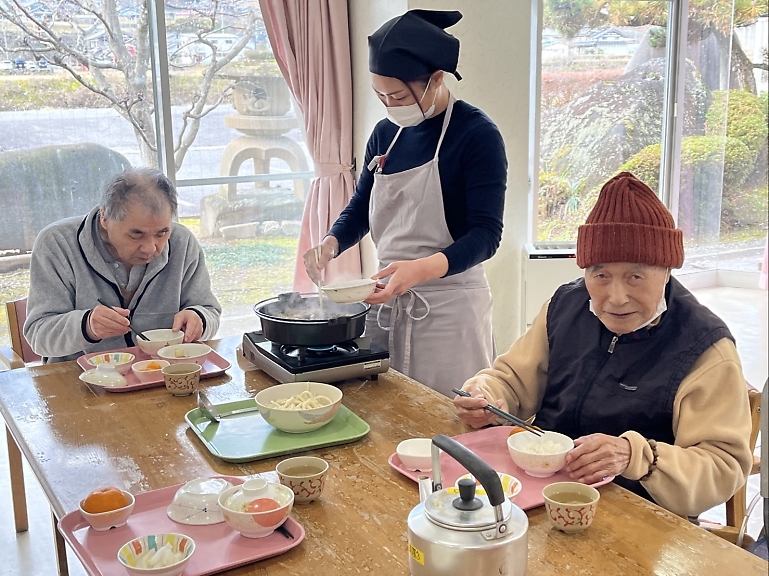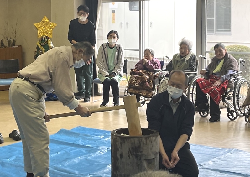 ◆餅つき(12月17日) 毎年恒例の餅つきを行いました。ついたお餅は、ぜんざいにして食べました。